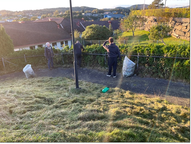 Det er høst og årets siste dugnad. Tar opp igjen tråden til våren. Godt fremmøte, kaffe og kaker fra personalet, god stemning og sosialt samvær.